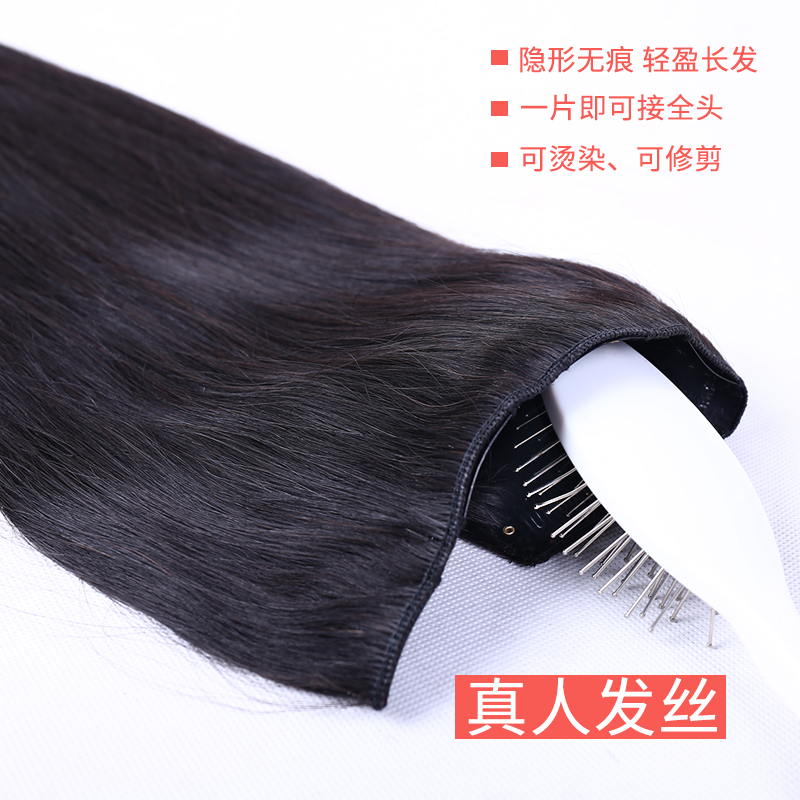 Chambelle real hair hair piece thickened one-piece straight hair piece can be dyed and perm invisible hair extension piece Real hair wig piece