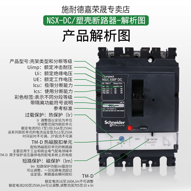 Schneider DC circuit breaker NSX-DC100A160A250A battery UPS air start room main gate 2P3P