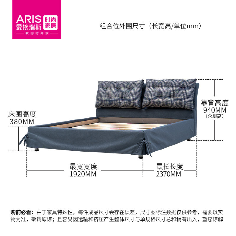 ARIS Aries Modern Simple Fabric Soft Bed Bed Plus Mattress Combo Package Bedroom Fros WFB-02