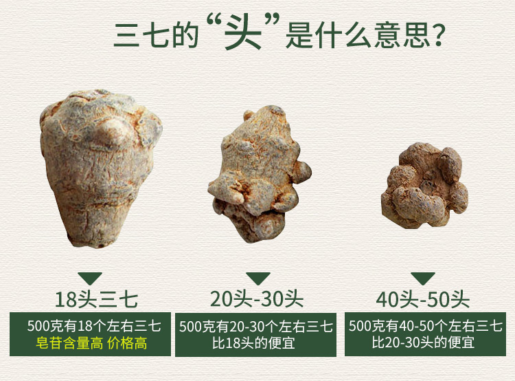 Sanqi Yunnan Wenshan Sanqi 20 heads 30 heads 40 heads Natural spring Sanqi head Tianqi 500g can be ground on behalf of Sanqi powder
