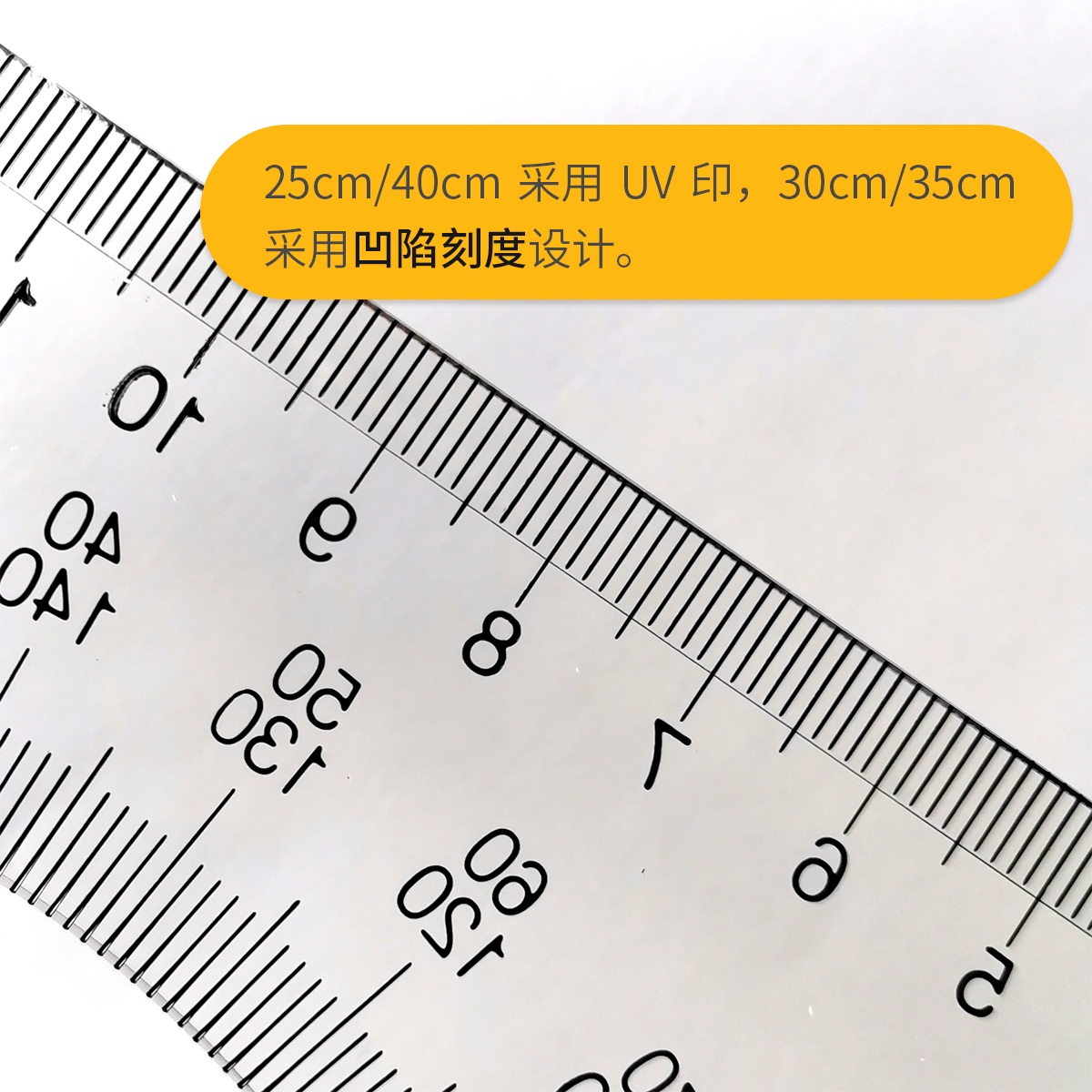 25cm (UV printed scale) 30cm (recessed scale) 35cm (recessed scale) 40cm (UV printed scale)