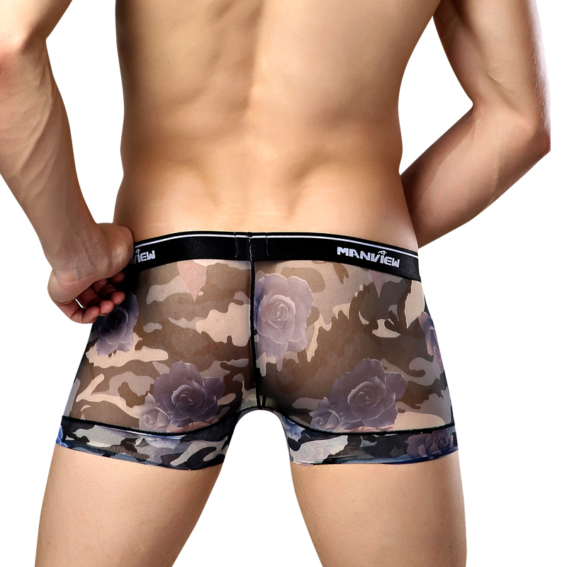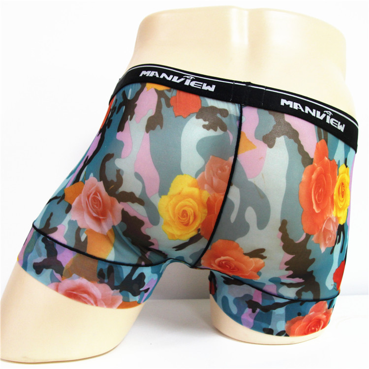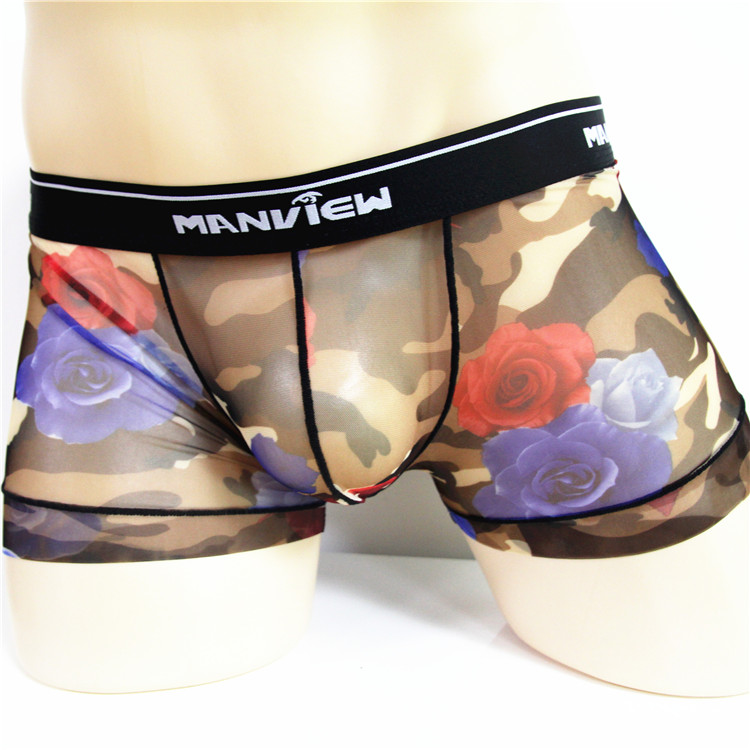 Sexy breathable ultra-fine rose mesh boxer men's underwear sexy underwear adult products factory direct sales