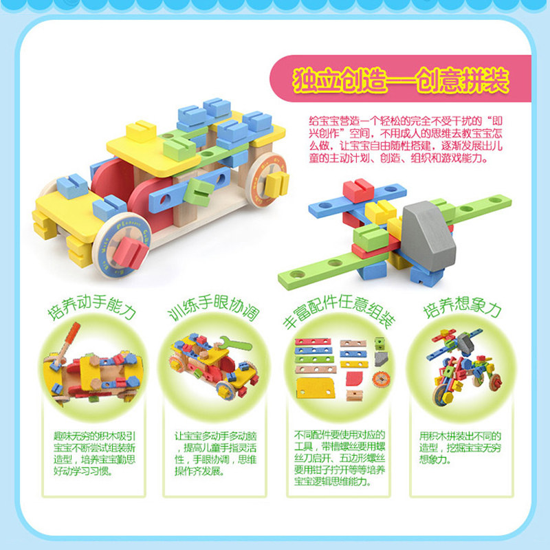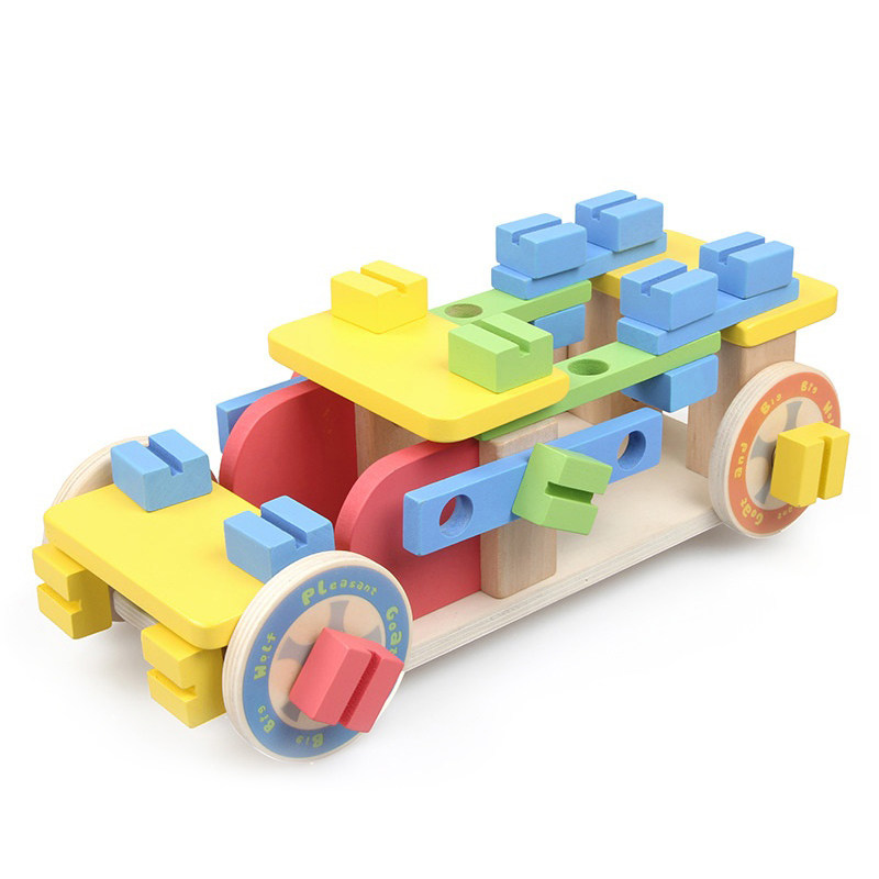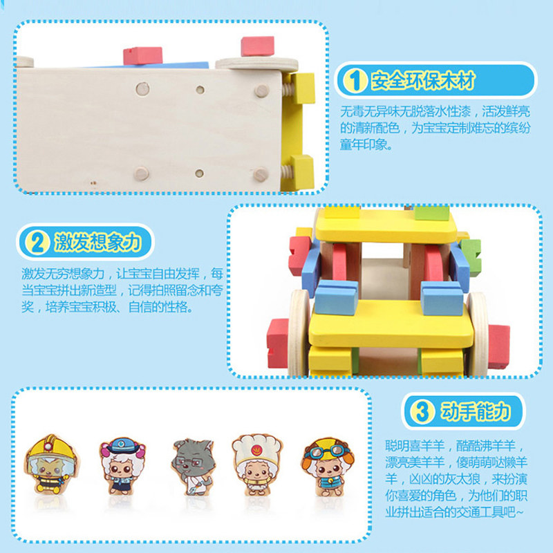 Australian Bay Creative Transport Group Children Building Blocks Nut Knock-down Car Puzzle Hands-on Assembly Intelligence Wooden Toys