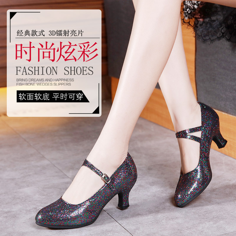 Latin Dance Shoes Women Silver Summer High Heels Modern Soft Soft Soft Soft Dancing Shoes Dancing Square