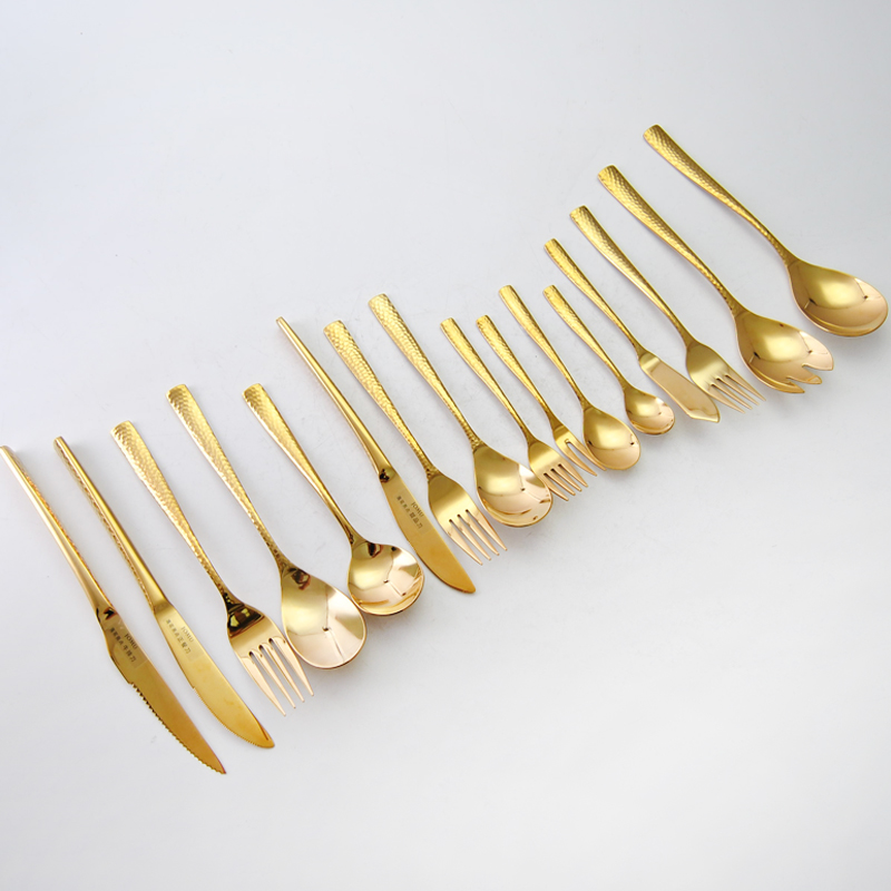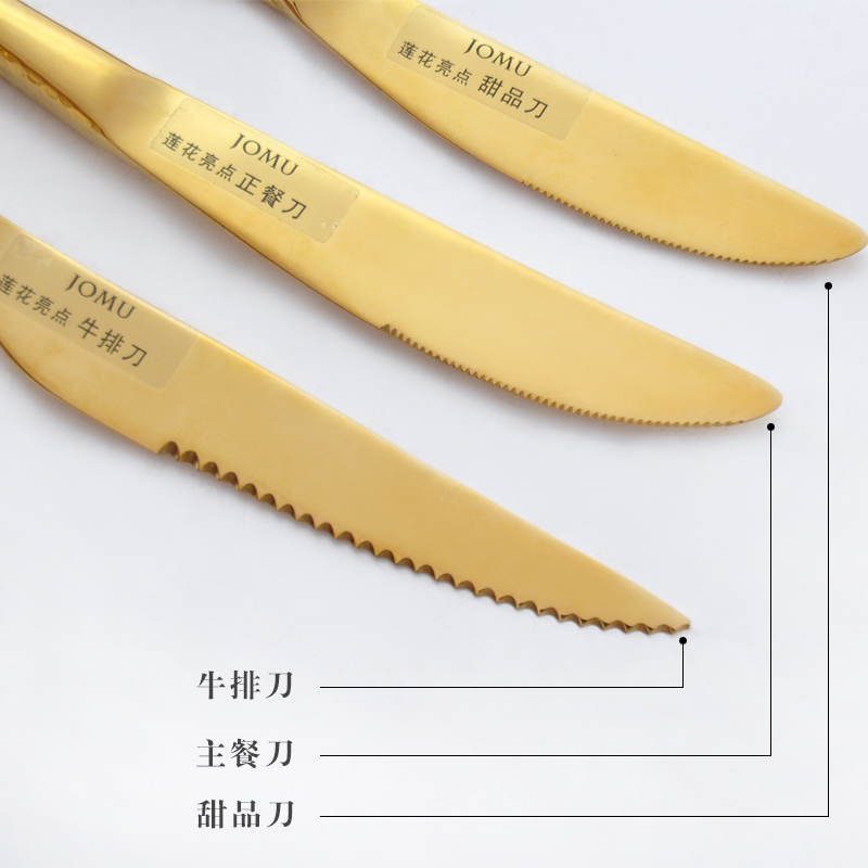 Special dining room Golden steak knife, fork and spoon, coffee spoon, fruit fork, dessert knife, fork and spoon, knife and fork 2 western tableware