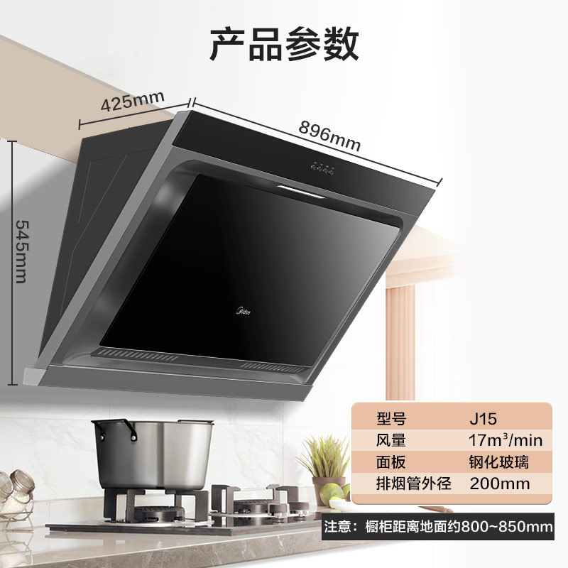 Midea J15 smoking machine home kitchen side suction exhaust machine Large suction suction range hood flagship store off the row