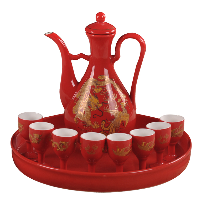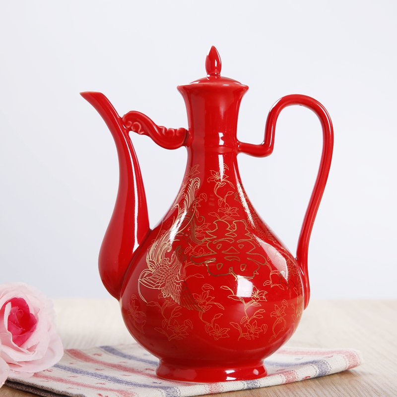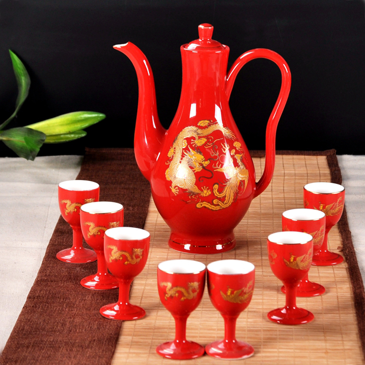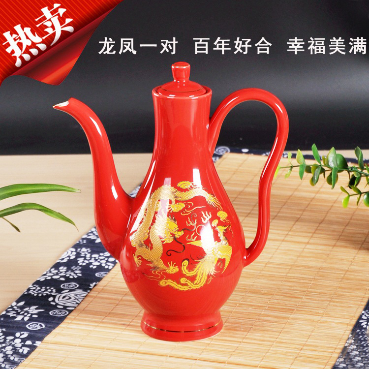 Wedding banquet Jingdezhen Ceramic home 1 catty white wine with large number of Chinese red Longfeng Imitation Ancient Bronzed Wine Jug-Taobao