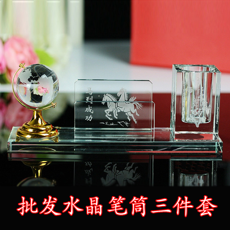 Crystal diamond pen holder Three-piece set business gift ornaments Creative office practical gifts custom logo souvenir lettering