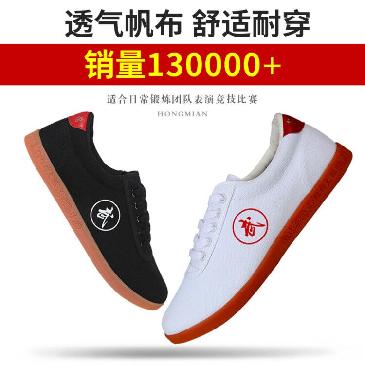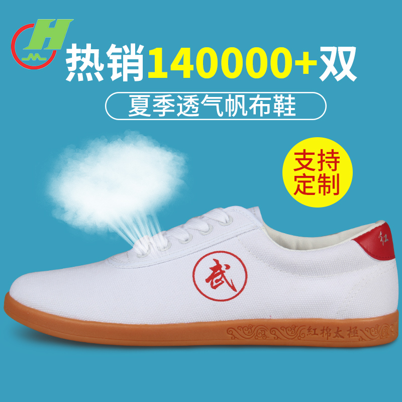 Red cotton Tai Chi shoes for men and women spring and summer tendon bottom canvas shoes children's martial arts training special Tai Chi practice shoes