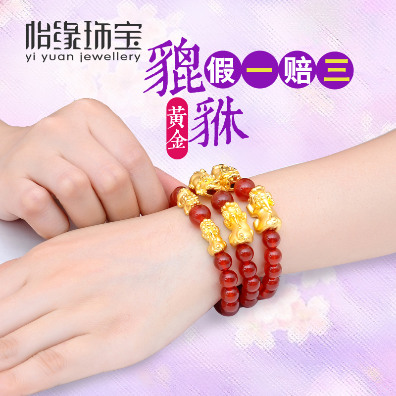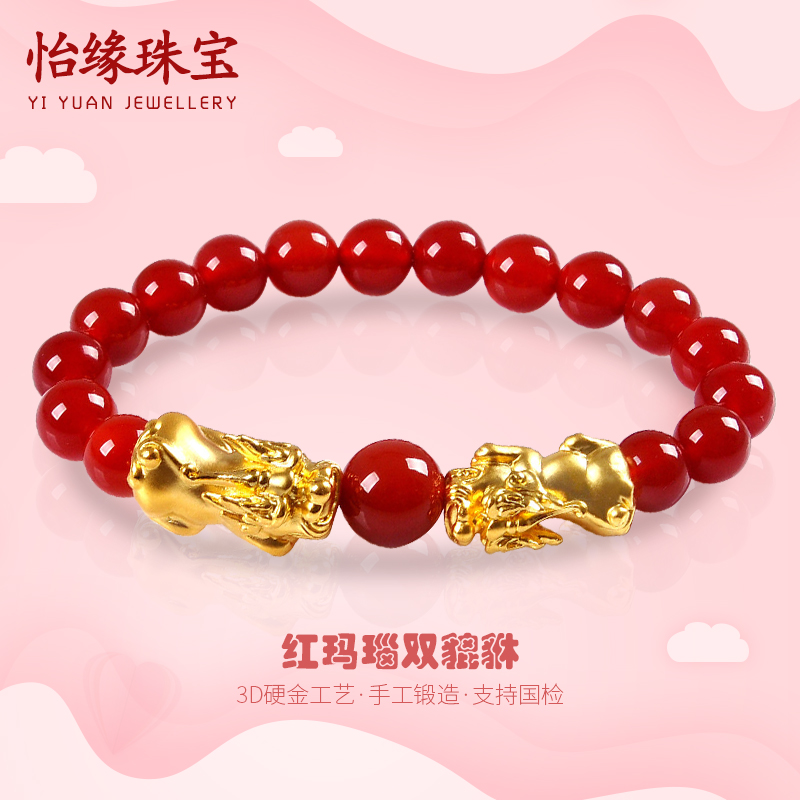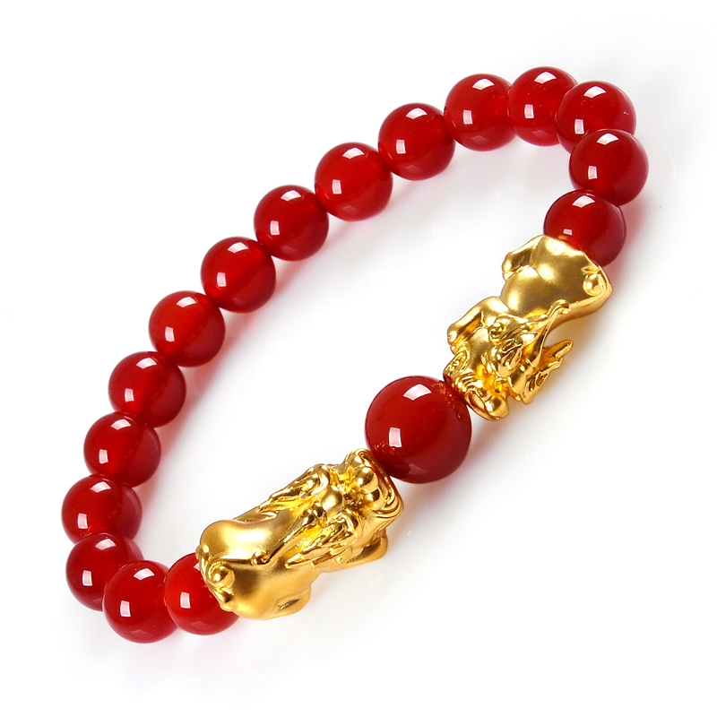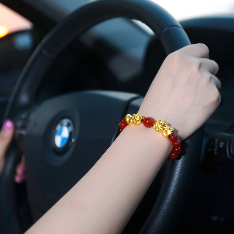 Gold Pixiu Transfer Bead Bracelet Red Agate 3D Hard Gold Pixiu Bracelet 999 Foot Gold Pichu Bracelet Couple Women