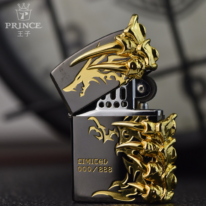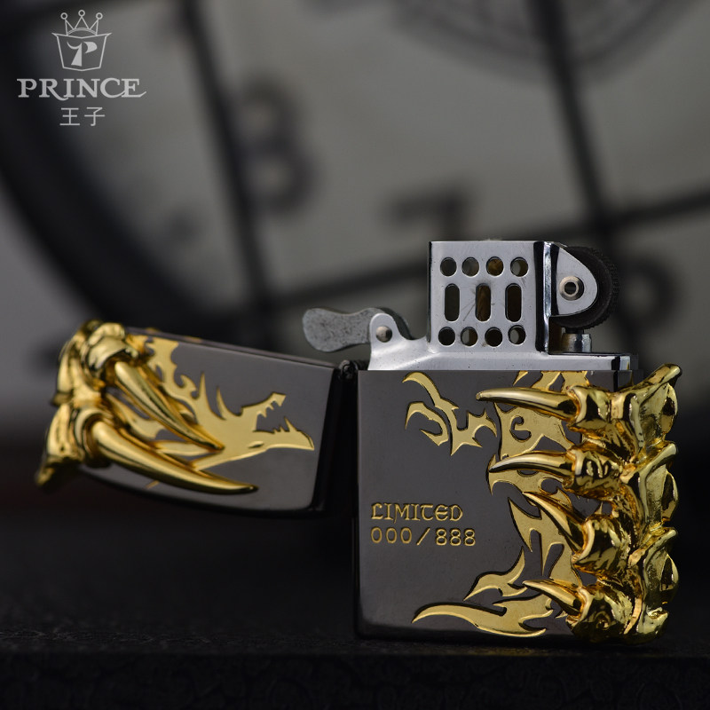 Japan Import Prince's PRL Series of Dragon Battle Gilded Three Sides Engraved With Stamp Dragon Claw Fire Asbestos Oil Lighter