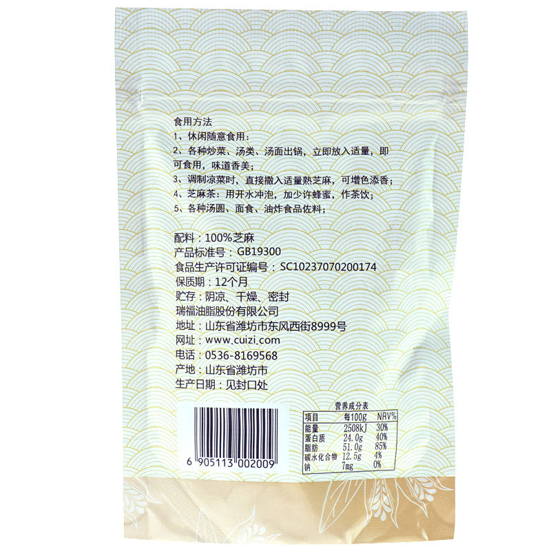 Cui brand cooked sesame fry sesame fragrance fragrance free grass seed free bag ready to bake 50g