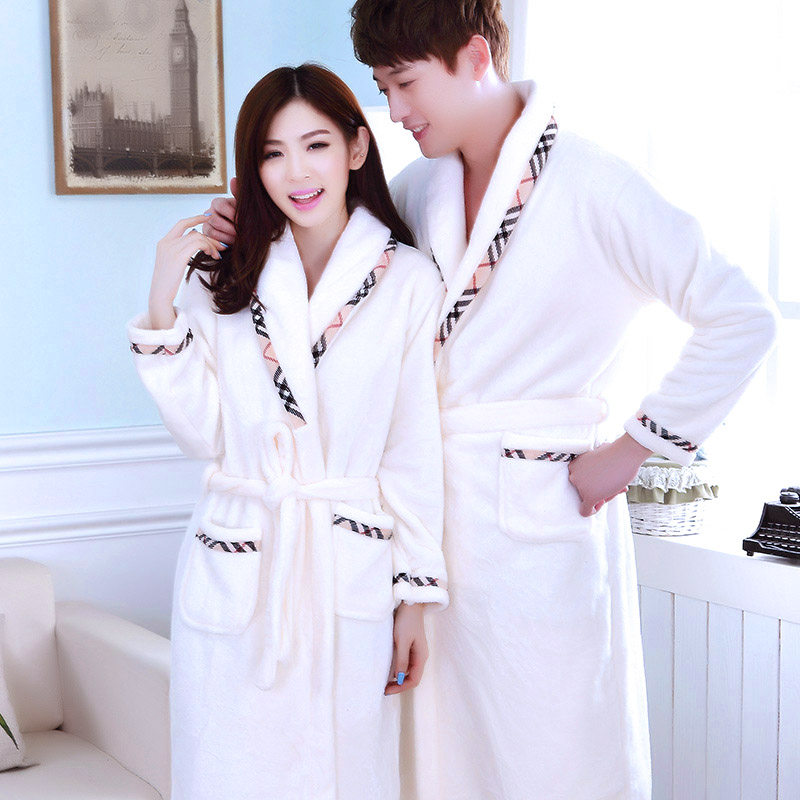 Nightgown couple pajamas Women's autumn and winter thickened flannel long version morning robe bathrobe men's coral velvet spring and autumn home clothes