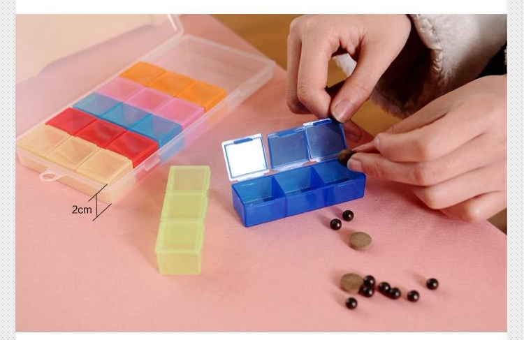 Colorful travel portable medicine box imported from Japan, one week medicine box, seven days divided medicine box, portable medicine storage box