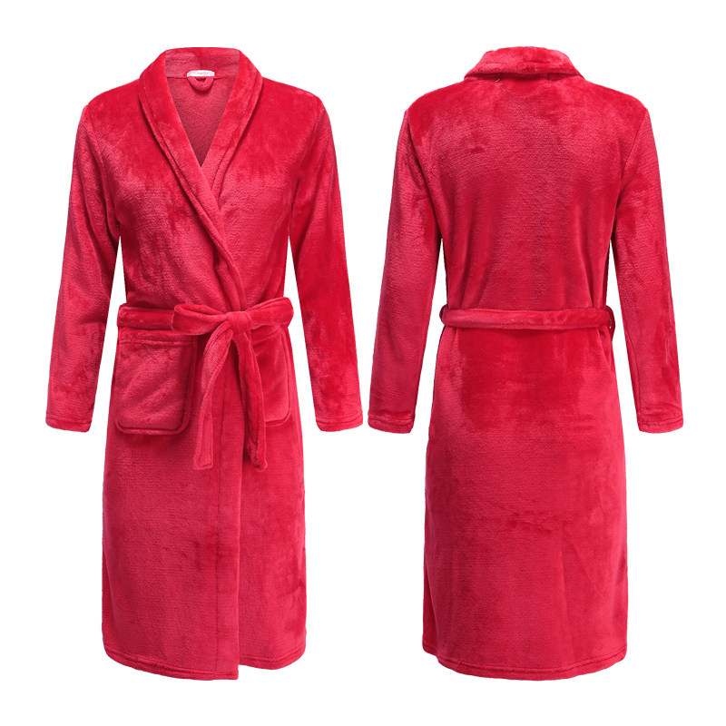Solid color red-women's robe (thickened and extended version) Solid color white-women's robe (thickened and extended version) Solid color pink-women's robe (thickened and extended version) Solid color rose red-women's robe (thickened and extended version)
