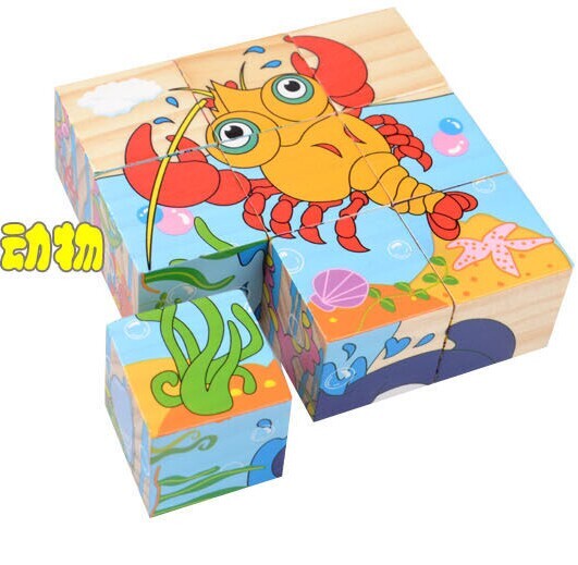 Wooden six-sided picture, nine-piece jigsaw puzzle, 3D vertical volume, wooden toy for children aged 3-4-5-6