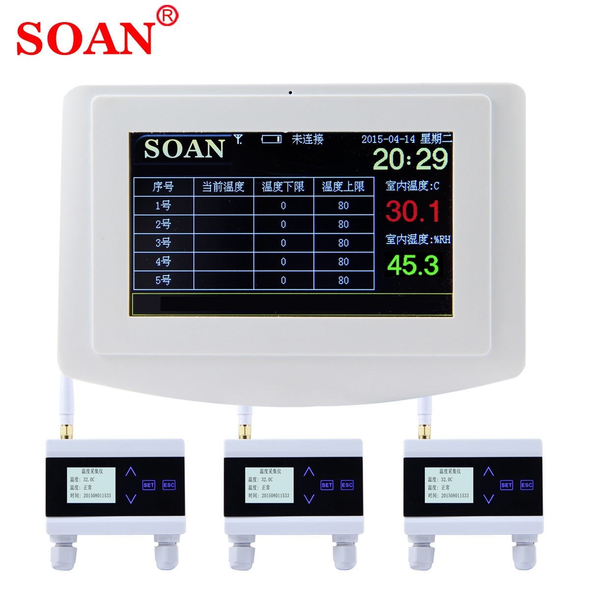 Computer temperature recorder mobile phone in real time inquire about temperature and humidity GSM room temperature siren stop power cut alarm