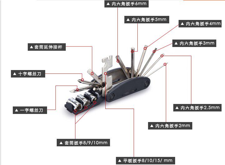 16 fit 1 multifunction portable combination tool bike mounting repair tool wrench sleeve screwdriver