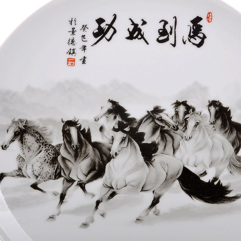 Jingdezhen Ceramic Ware Decorative Plate Horse To Successful Porcelain Disc Sitting Tray Modern Home Decoration Craft Gift Pendulum Decoration