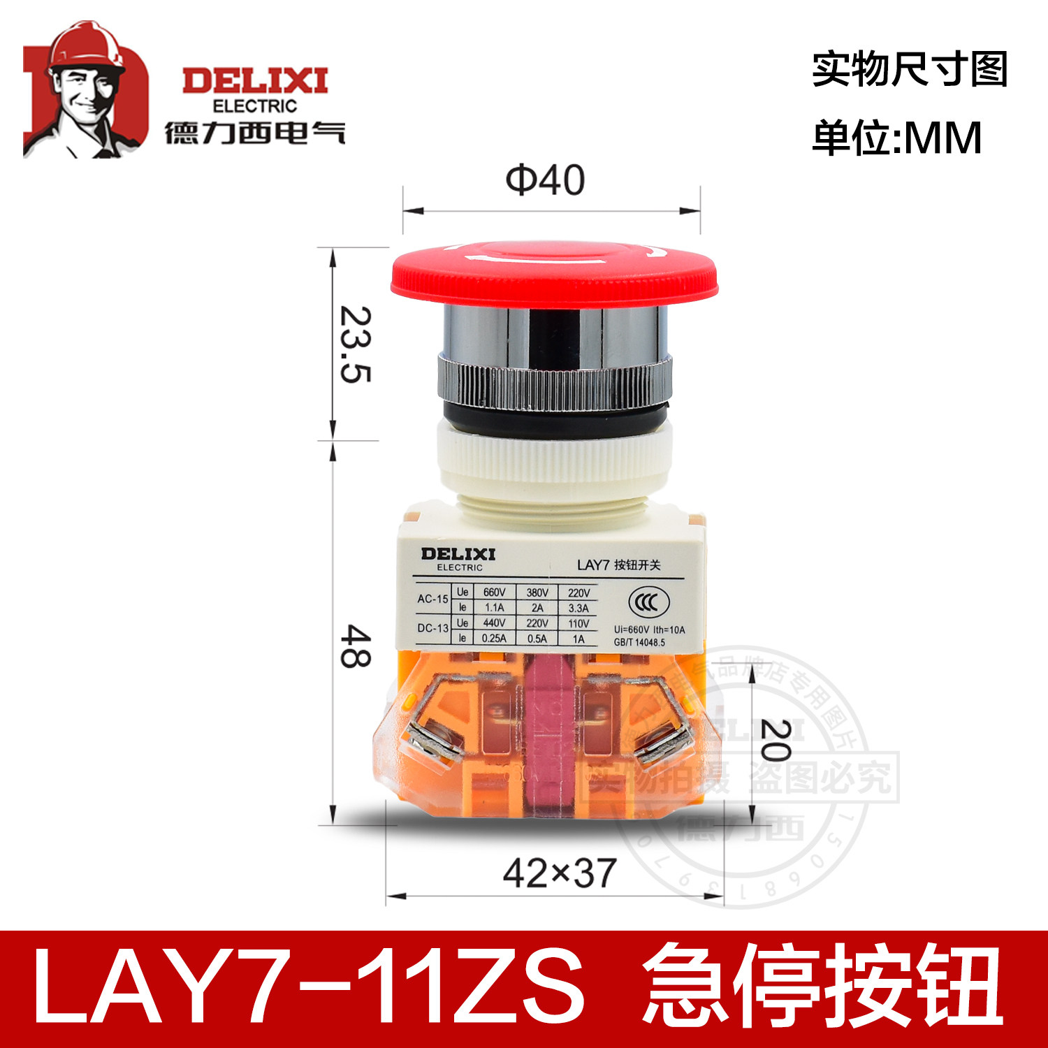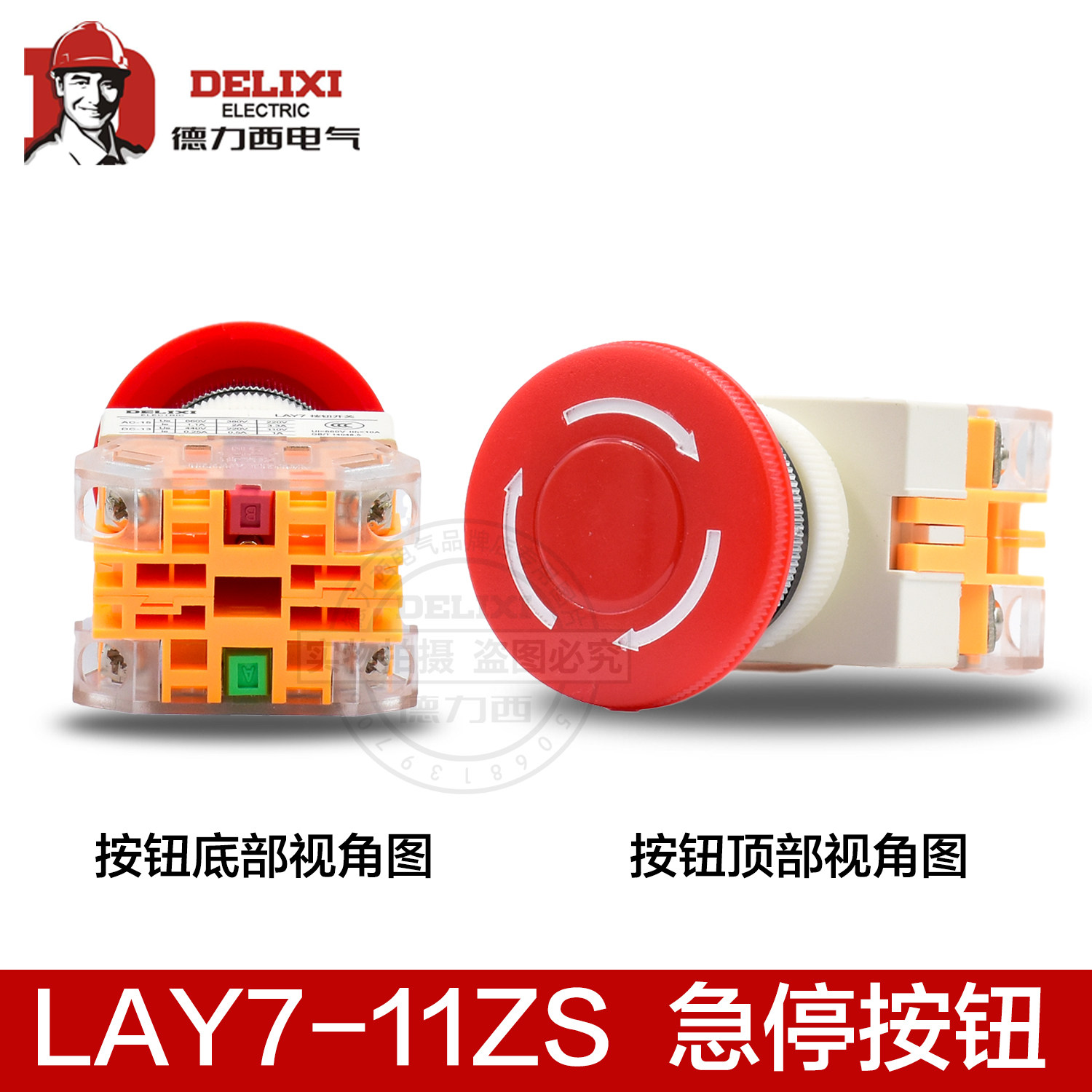 Deli West LAY7-11ZS Mushroom Head Rush Stop Self Lock Button Switch Emergency Stop Switch Emergency Stop Button LAY37