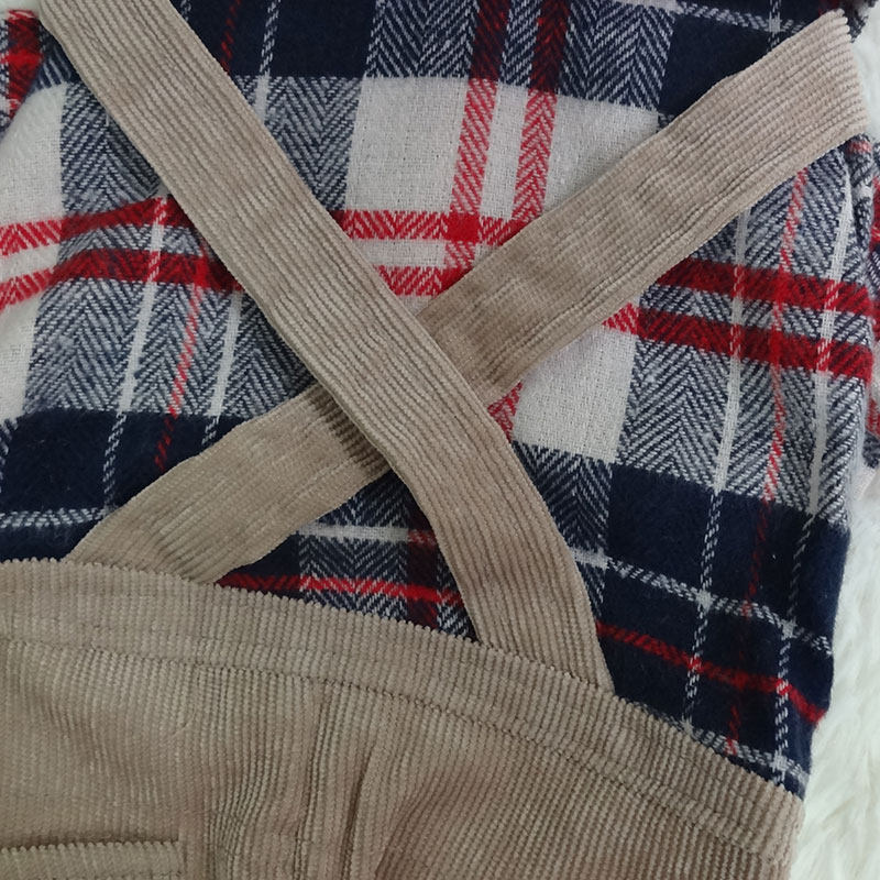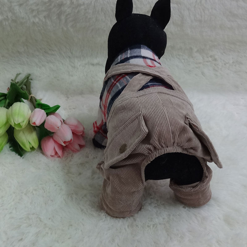 Bichon Teddy clothes British style handsome plaid shirt hug baby bag pants four-legged pet clothes puppy autumn clothes