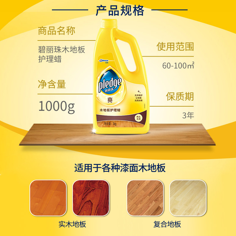 SC Johnson Bilizhu solid wood floor wax 1kg composite maintenance Household wood care oil semen body wax protection