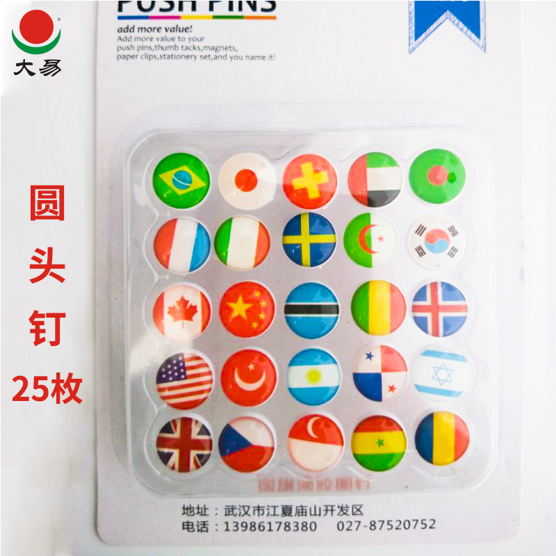 Soft wooden panels special colored artificial nails China map Flag-shaped nails World map Flag pins nail down nails