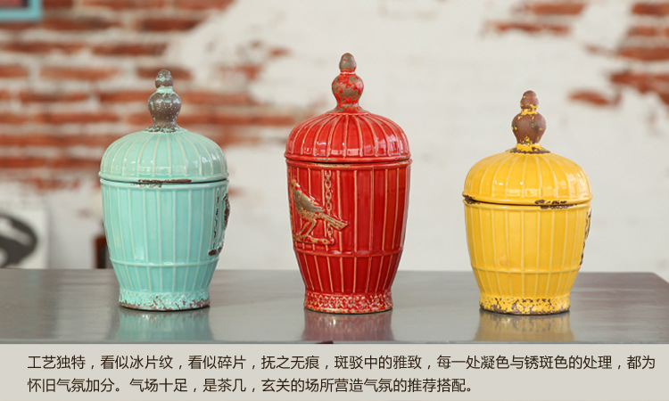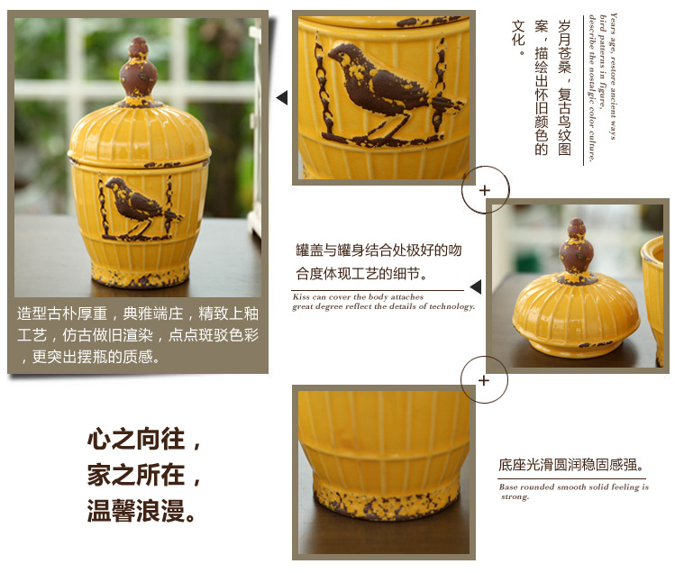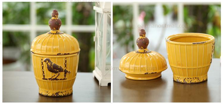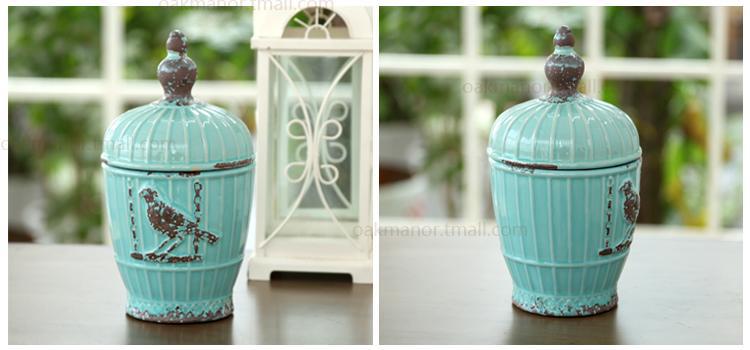 French country ceramic decorative storage tank retro old rust iron mottled bird embossed colored glaze storage tank