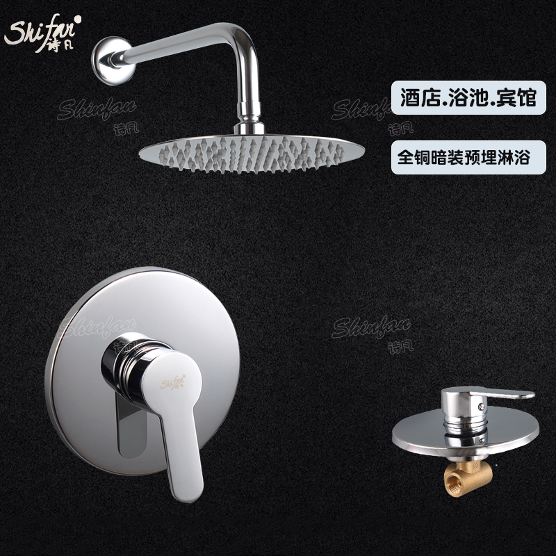 Full copper concealed shower shower kit Entrance Wall Shower hot and cold Hide shower Hybrid Valve Embedded dark hide