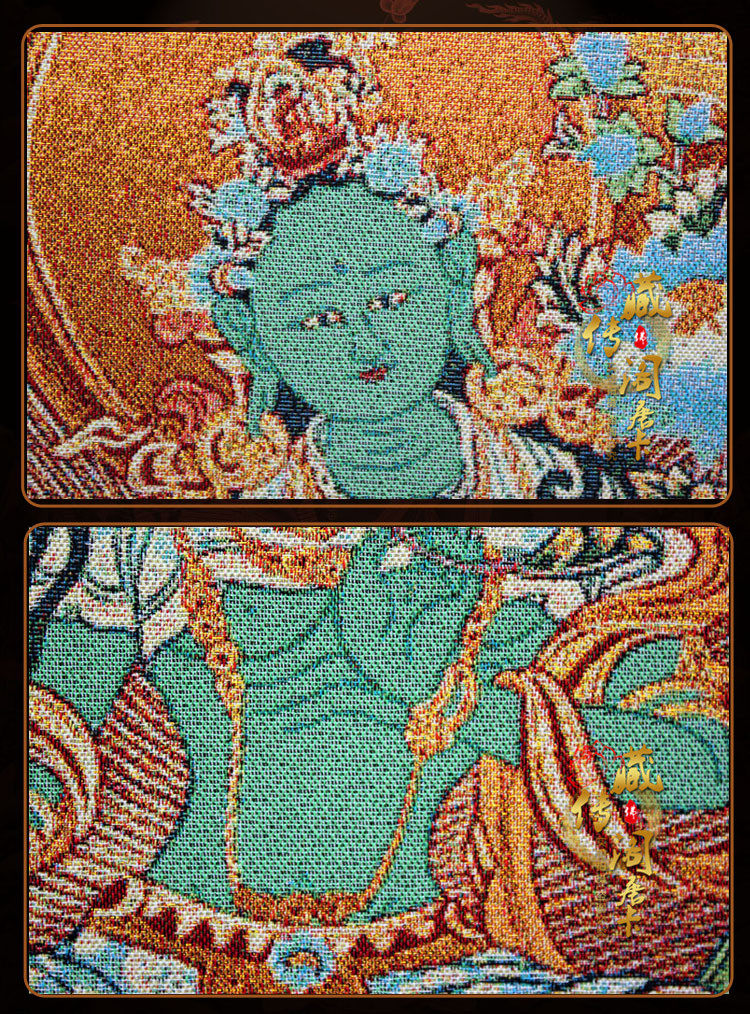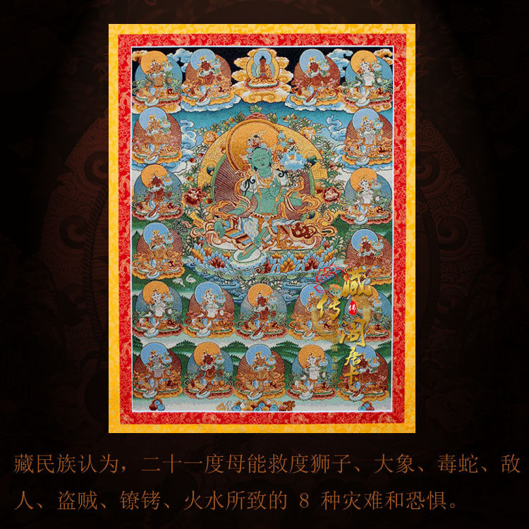 Tibetan Legend Pavilion Tibetan Buddhism 21 mother figure Thangka painting Embroidery Green mother hanging painting Brocade Tibetan National Tang Dynasty