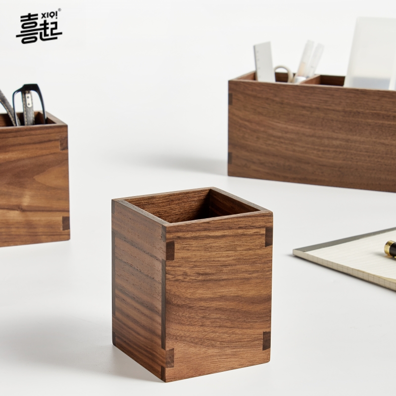 Hi black walnut pen holder office desktop stationery finishing storage box simple wooden pen box glove box