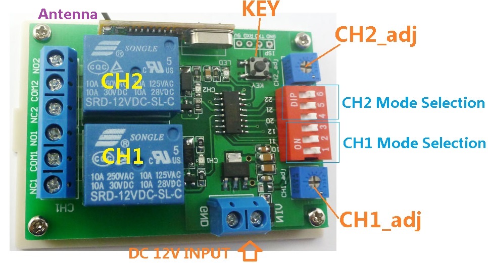 12V 2 - channel multi - function wireless controller Point self - lock interlock delay relay remote control switch