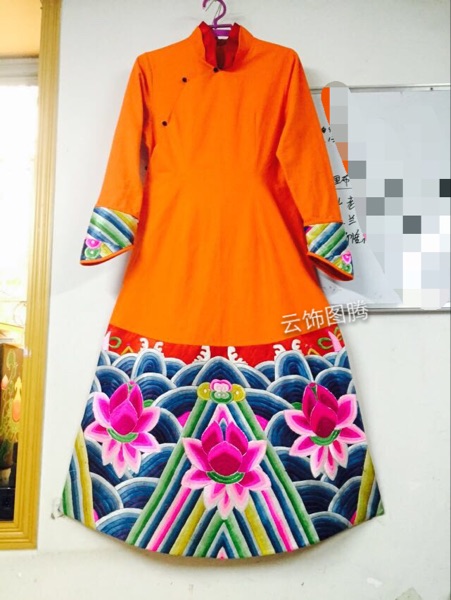 Cloud decoration totem women's robe dress Ethnic style women's old embroidery hand embroidery Broken thread embroidery