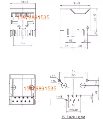 RJ45 socket 8P8C network socket Network interface Crystal head seat with shield Length 18*Height 13mm