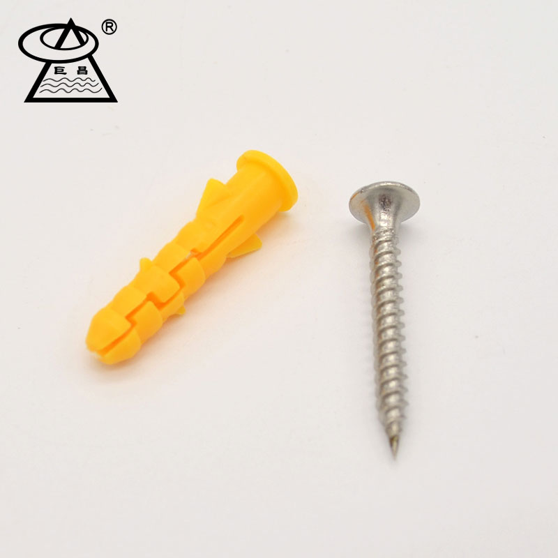 Small Yellow Fish Wall upper plastic puffy tube expansion screw Fluffy Stopper with stainless steel self-tapping fixing gel grain
