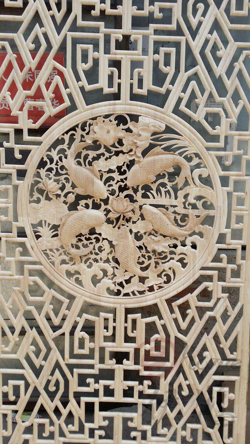 Dongyang woodcarving Chinese style antique hollow elm lattice screen partition solid wood doors and windows background wall custom