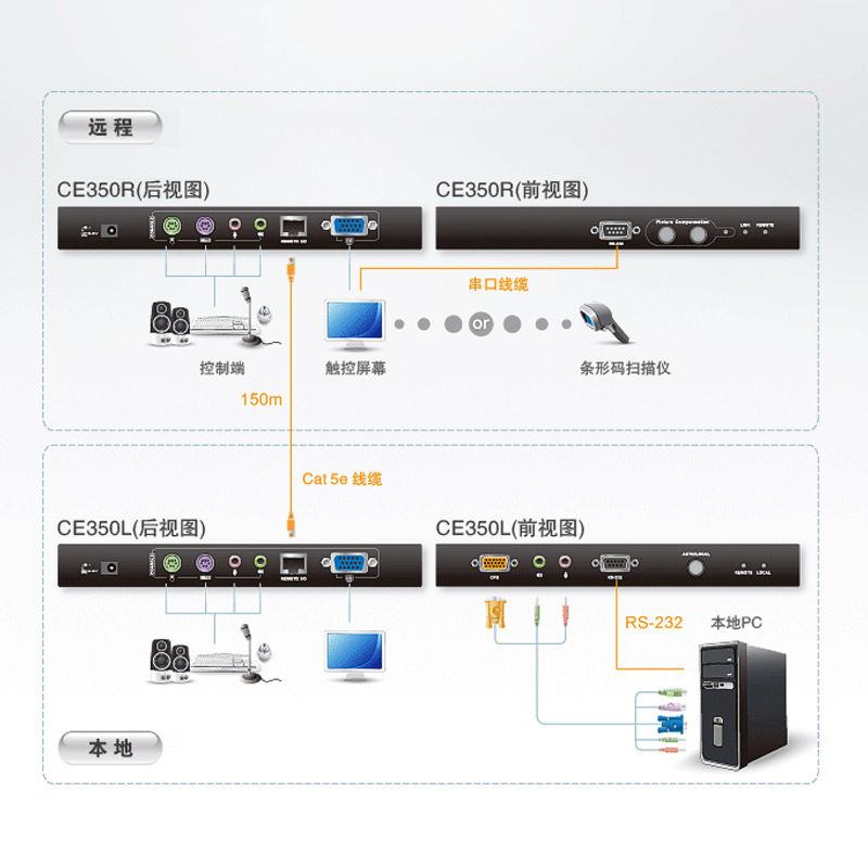 ATEN CE350 KVM Signal VGA Extender PS 2 supports RS232 audio