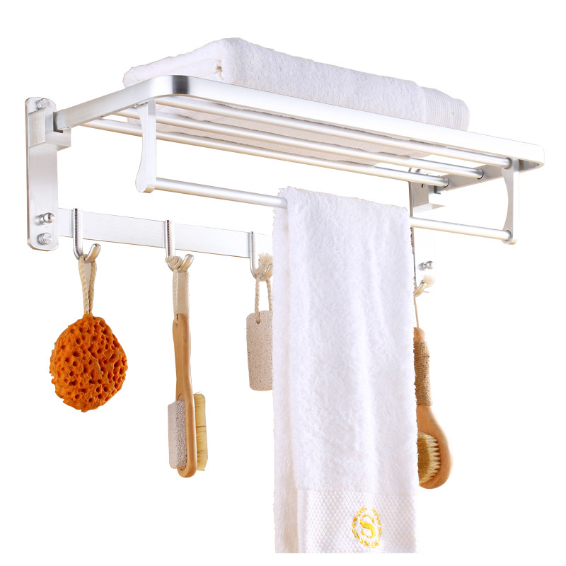 Free hole towel rack Space aluminum powder room shelf Bathroom double bath towel rack Wall-mounted bathroom hardware pendant