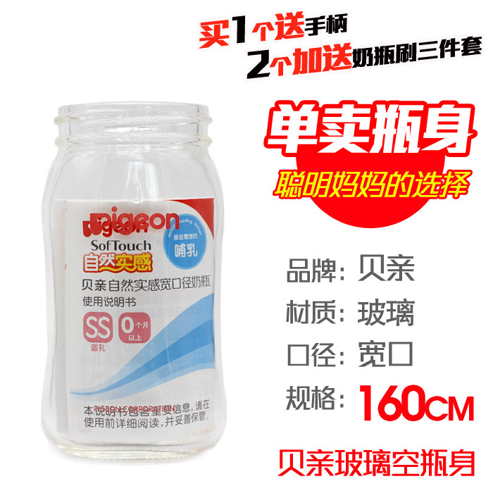 贝亲原装玻璃160ml瓶身贝亲PP塑料160ml瓶身贝亲玻璃240ml瓶身 送橘黄防摔套贝亲玻璃160ml瓶身 送橘黄防