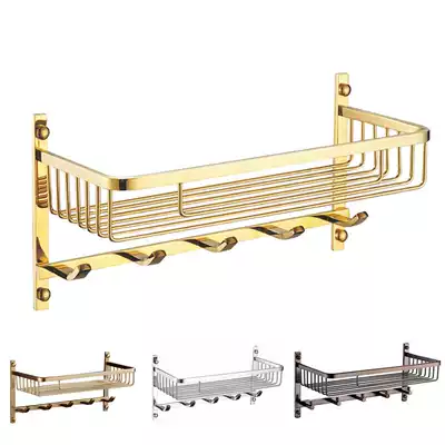 Name warm all copper bathroom pendant net basket with towel adhesive hook rack rectangular Golden Brown ancient antique drawing