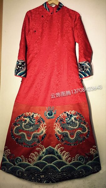 Cloud decoration totem original hand-made robe dress Ethnic style women's clothing Late Qing old embroidered handmade dragon dress