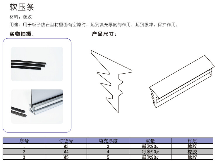 Aluminum alloy profile door frame pressure strip Glass sealing strip Door panel pressure strip Rubber soft pressure strip Filling strip