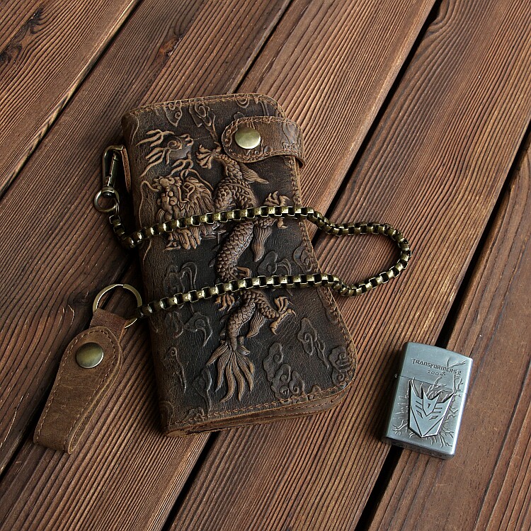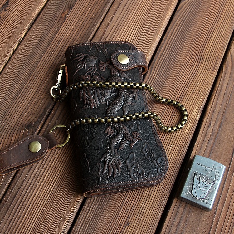 Crazy Horse Leather European and American Trendy Men's Long Edition Handmade Wallet Clip Retro Personality Cowhide Genuine Leather Japanese and Korean Motorcycle Pants Chain - Taobao