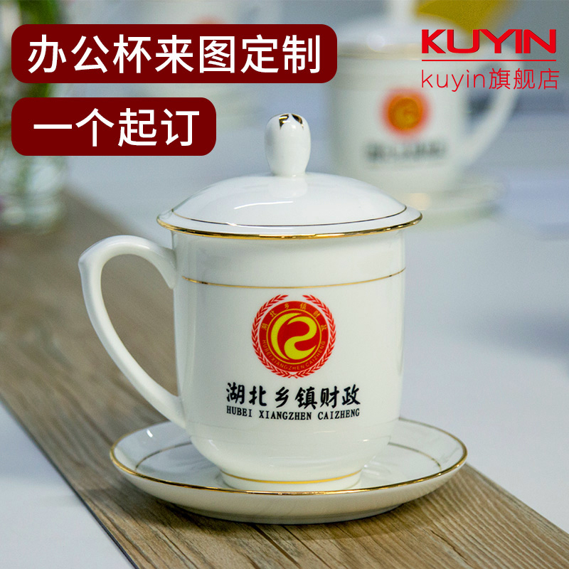 kuyin Zhongnanhai bone porcelain cup office meeting cup with lid tea cup custom logo gift cup booking for water glass A