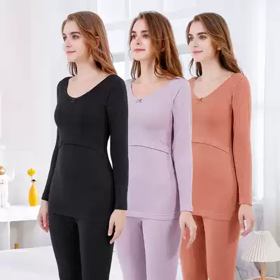 Postpartum breastfeeding autumn clothes Maternal breast-feeding clothes plus velvet hot clothes sanitary clothes long sleeves bottom clothes autumn and winter