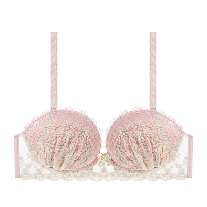 Flower house half cup sweet lace girl bra thin cute bra Japanese small chest gathered on the trust underwear 155