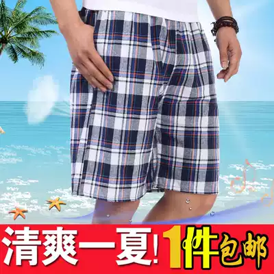 Summer middle-aged shorts men's father clothes middle-aged and elderly beach pants plaid cotton father thin casual five-point pants