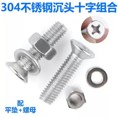 304 Stainless Steel Countersunk Head Phillips Screw Combination Nut Flat Pad Flat Head Screw Set M2M3M4-M10