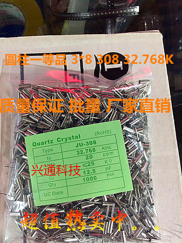 32 768K cylindrical in-line crystal oscillator 32 768KHZ 308 3*8 ±20PPM 12 5PF manufacturer direct sales