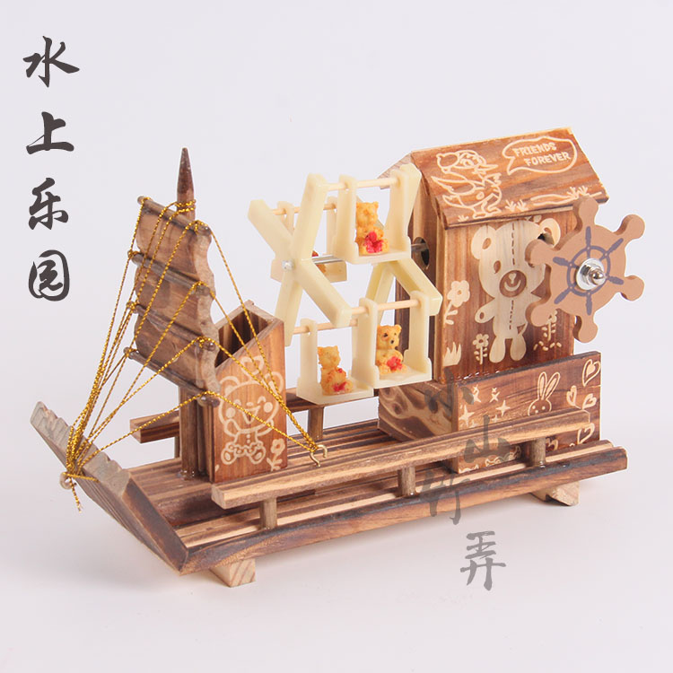 Bamboo and wood crafts decoration sailboat model waterwheel tea table Bedroom decoration Home decoration Creative office ornaments